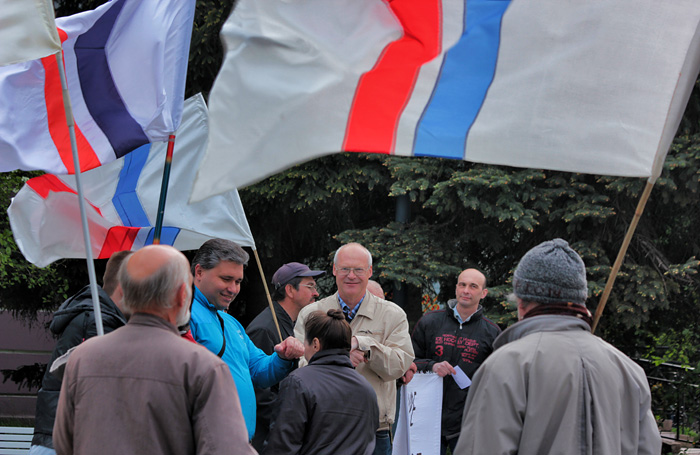 Евгений Гришин (в центре) на акции в поддрежку узнаков Болотной в Калининраде, 6 мая 2014 года. Роман Юхновец / «Медиазона»
